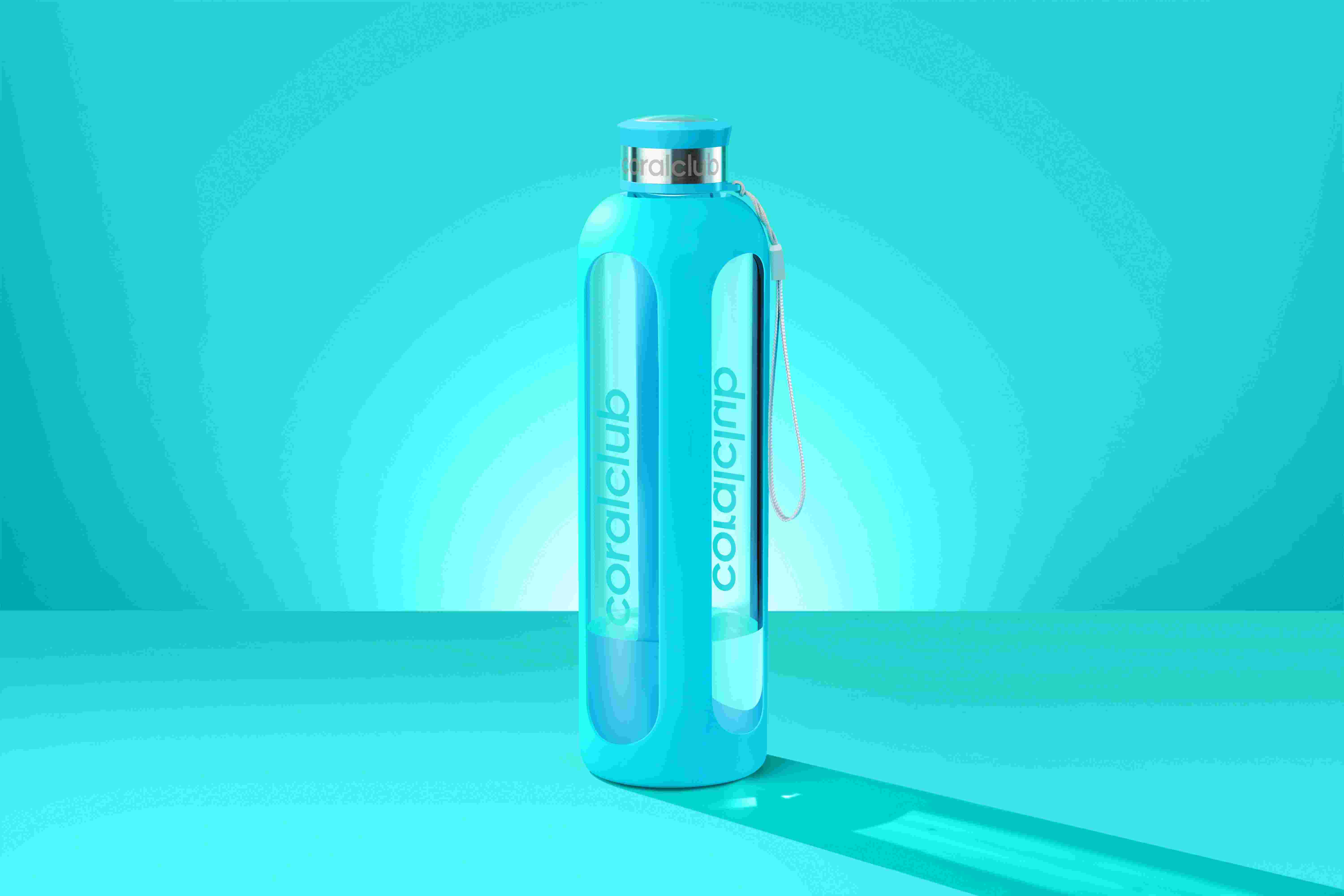 Clear Water glass bottle, Living Coral